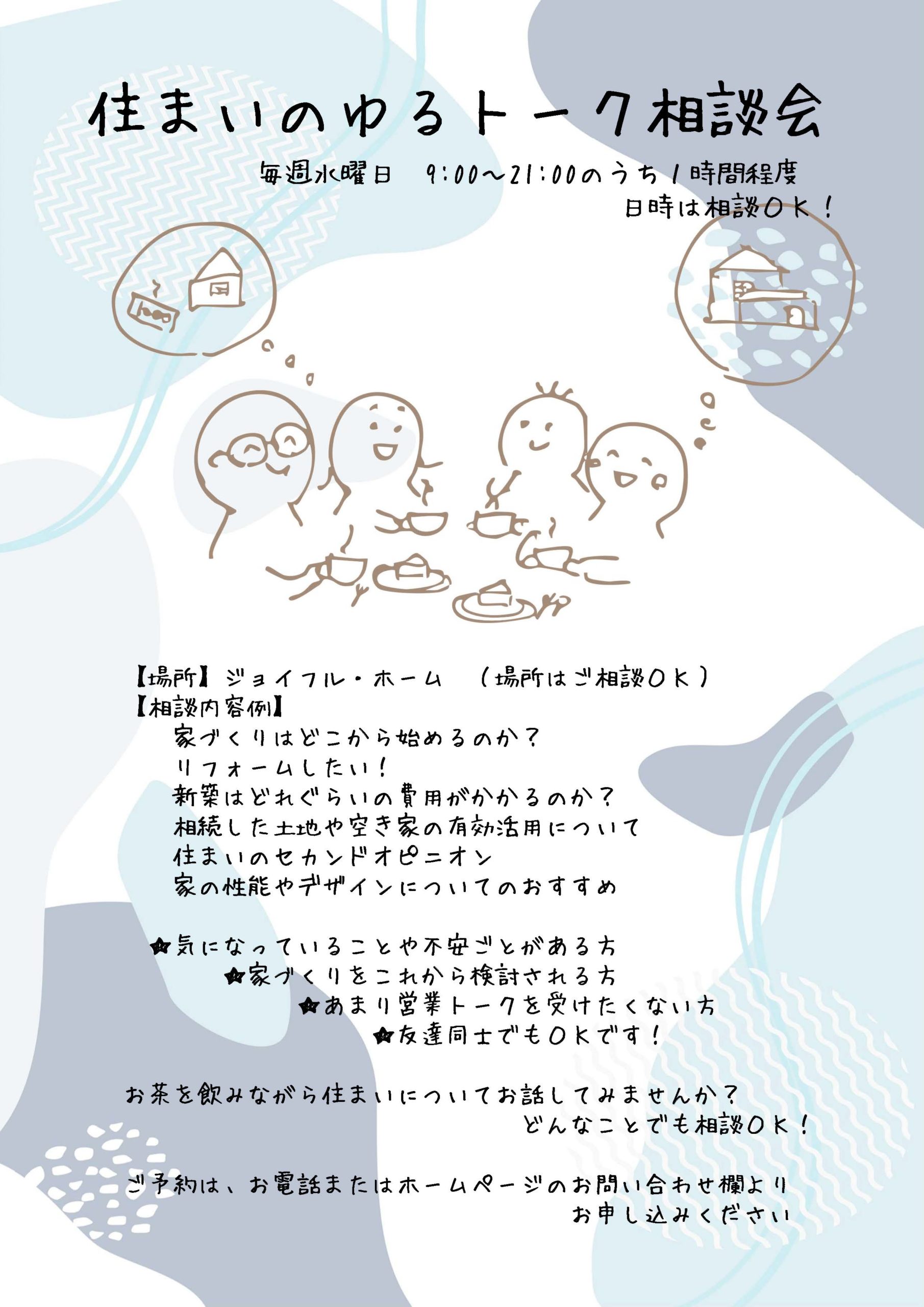 お知らせ住まいのゆるトーク相談会で、新築やリフォームのことをお話ししてみませんか?