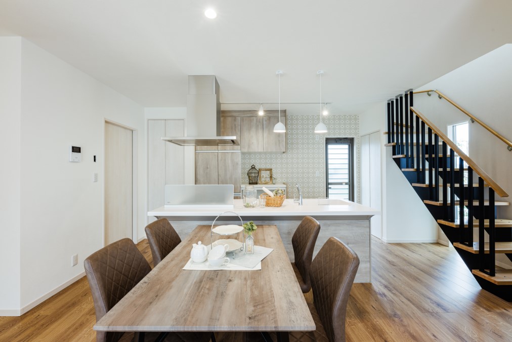 アンティーク風の壁紙は空間に馴染みながらも、さりげなく個性を演出